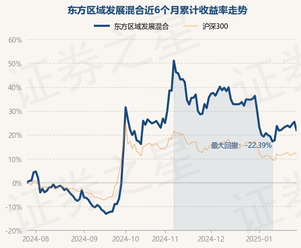 本站消息,1月27日,东方区域发展混合最新单位净值为1.171元,累计净值为1.171元,较前一交易日下跌2.81%。历史数据显示该基金近1个月下跌9.77%,近3个月下跌2.61%,近6个月上涨21.93%,近1年下跌2.17%。该基金近6个月的累计收益率走势如下图:
